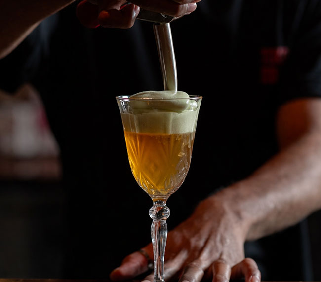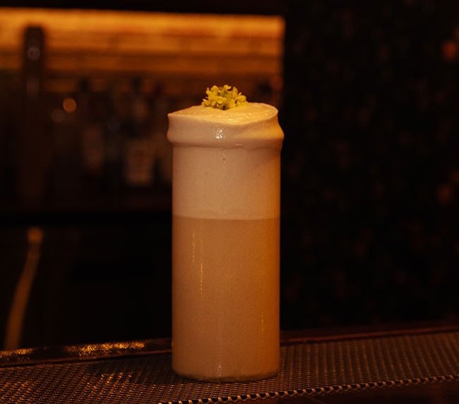 SMOKED GUAVA INFUSED SABBA GRAPPA, CITRUS, SIMPLE SYRUP, EGG WHITE (SMOKEY, FRUIT, SWEET & SOUR)