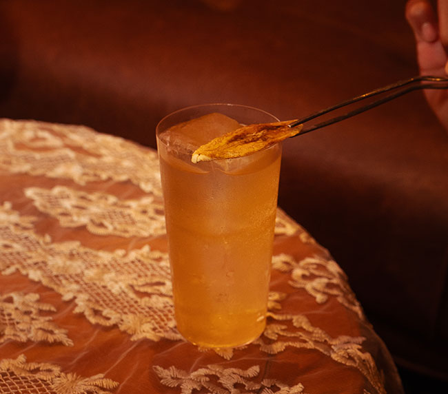 NUSACANA COCONUT RUM, CREAMY SHERRY, BLACKENED BANANA, PALM NECTAR, BOLU PANDAN FOAM (CREAMY, NUTTY, VELVETY)